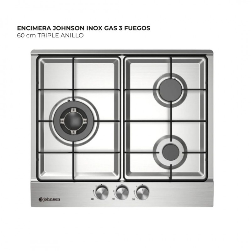 ENCIMERA JOHNSON INOX GAS 3 FUEGOS 60 cm TRIPLE ANILLO