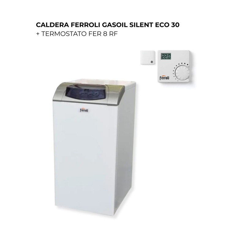 La Ferroli Silent eco 30 SI UNIT Low NOx es una caldera de gasoil analógica diseñada para ofrecer calefacción y agua caliente sanitaria instantánea (ACS) con una eficiencia destacada y un bajo nivel de emisiones contaminantes. Con una potencia de 25 kW, es ideal para viviendas unifamiliares que necesitan un alto rendimiento y un consumo optimizado.